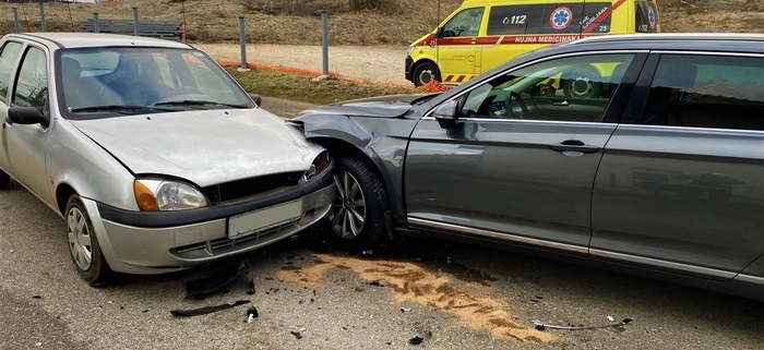 POROČILO IZ SPIN-A: Ob 8.38 sta na cesti Pod gozdom, občina Grosuplje, trčili osebni vozili. Gasilci GB Ljubljana in PGD Grosuplje so zavarovali kraj dogodka, oskrbeli poškodovano osebo do prihoda reševalcev NMP, odklopili akumulatorje na vozilih ter posuli iztekle tekočine. Poškodovana oseba je bila prepeljana v UKC Ljubljana.